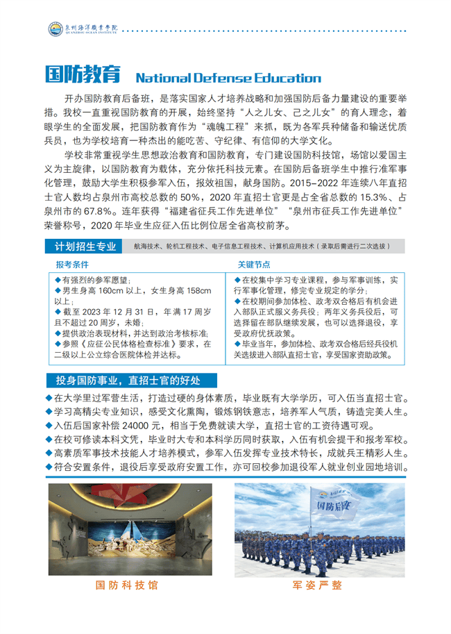 泉州海洋职业学院2023年招生简章